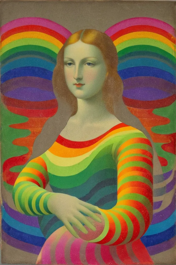 “Le Parc a curve path with a rainbow graphic design abstraccion geometrica, stripes, patterns, red, green, blue, purple, pink, yellow, orange (detailled), ((masterpiece))”