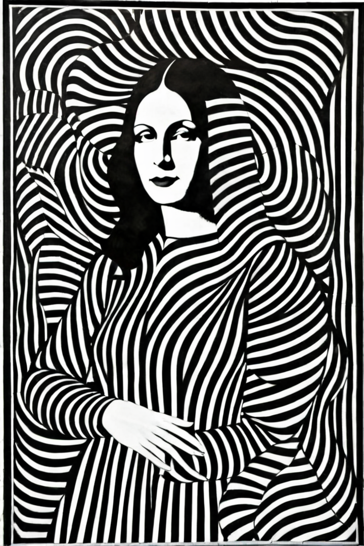 “la gioconda, (stripes) made of stripes Le Parc with a black and white design abstraccion geometrica”