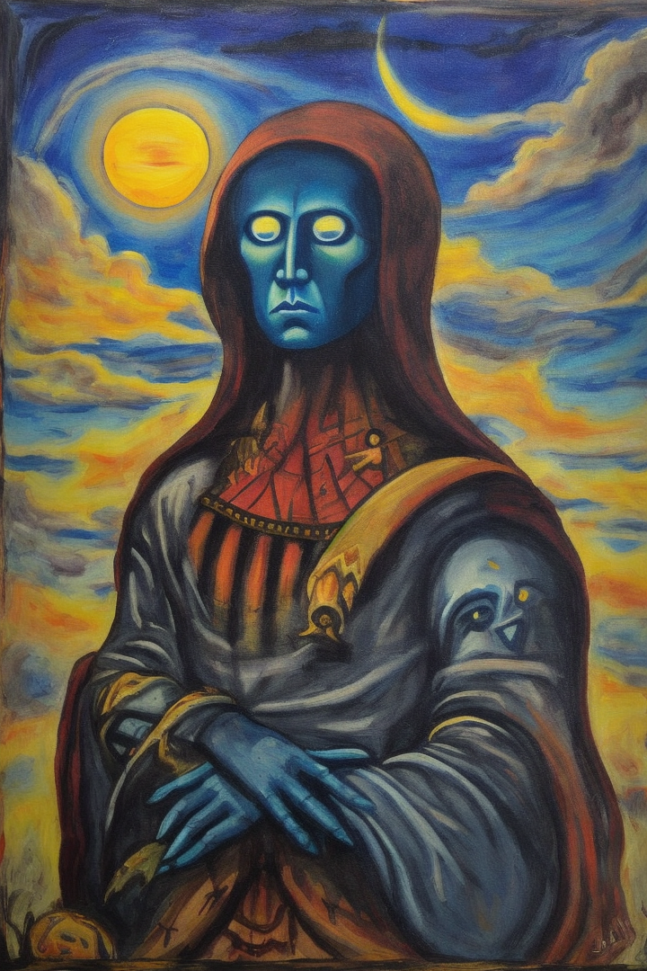“xul solar, painting, no humans, traditional media, creature, surreal, abstract, sun, zodiac, parody, clouds, sky”