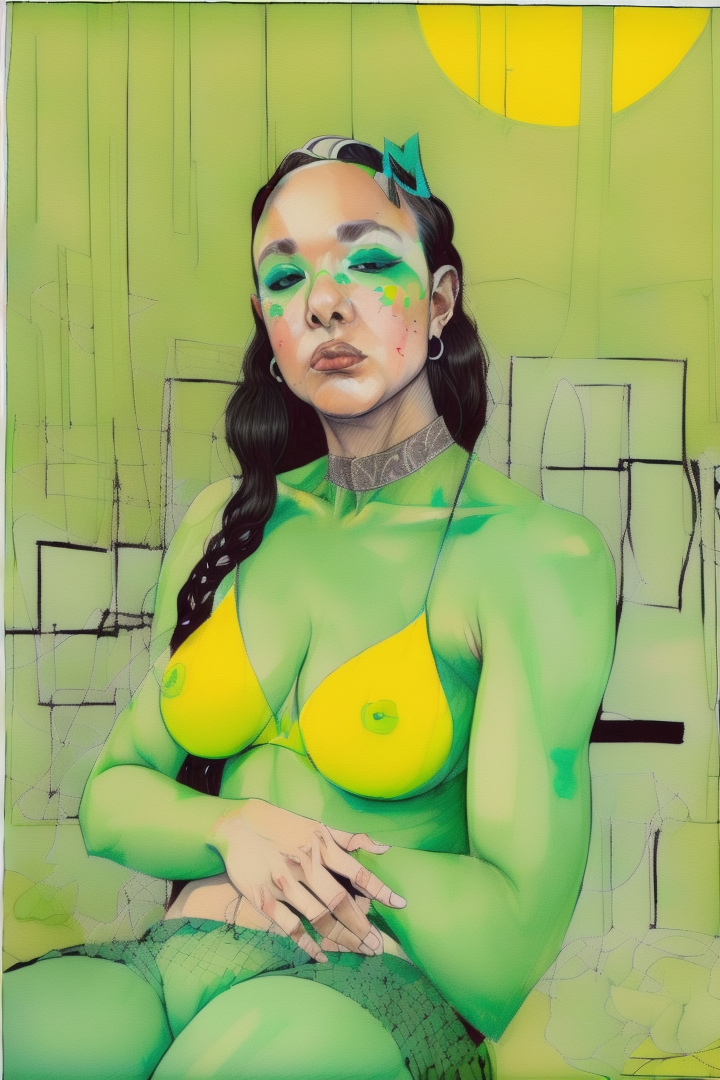 “(noma:1.8),(artwork) hand drawn pencil sketch,(lineart),outline,(expressive),sexy (nsfw),argentina,gouache,green yellow,,”