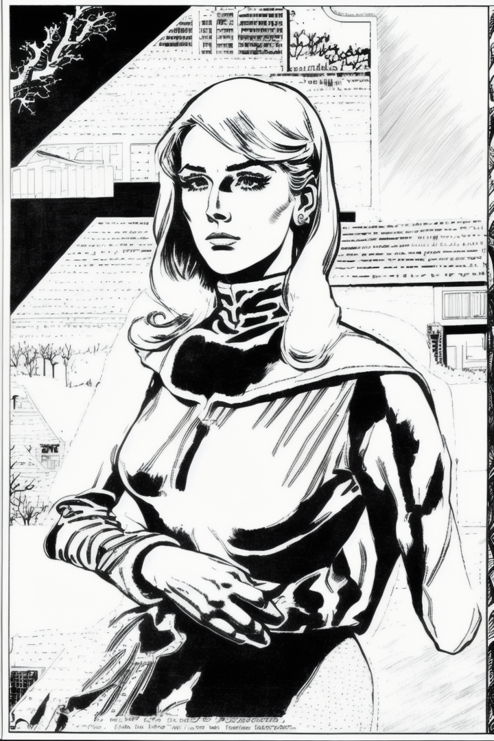 “a woman, eternauta, comic, silluete, black and white, left-to-right-manga, monochrome”