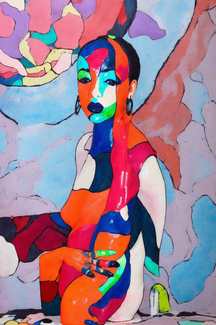 “(noma),(sculpture),a woman,sexy,lipstick,colorful,(photograph of a ceramic sculpture) on white,expressive,nsfw,”