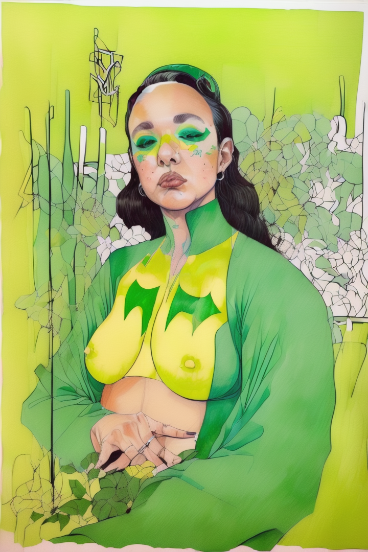 “(noma:1.8),(artwork) hand drawn pencil sketch,(lineart),outline,(expressive),sexy (nsfw),argentina,gouache,green yellow,,”