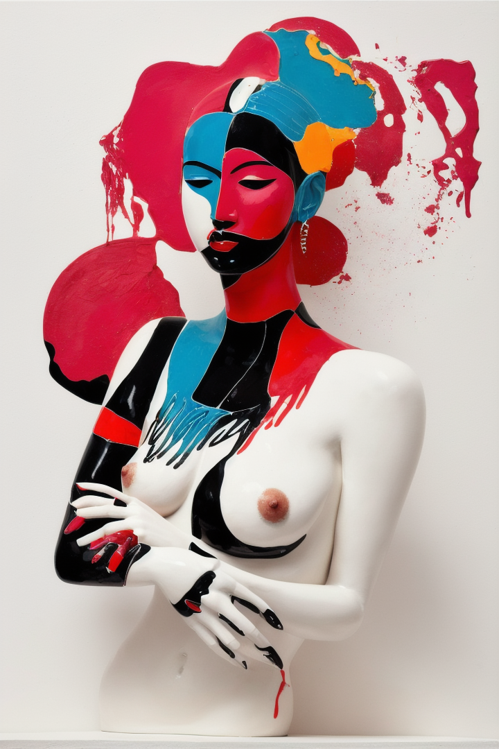 “(noma),(sculpture),a woman,sexy,lipstick,colorful,ceramic sculpture on white background,expressive,nsfw,”