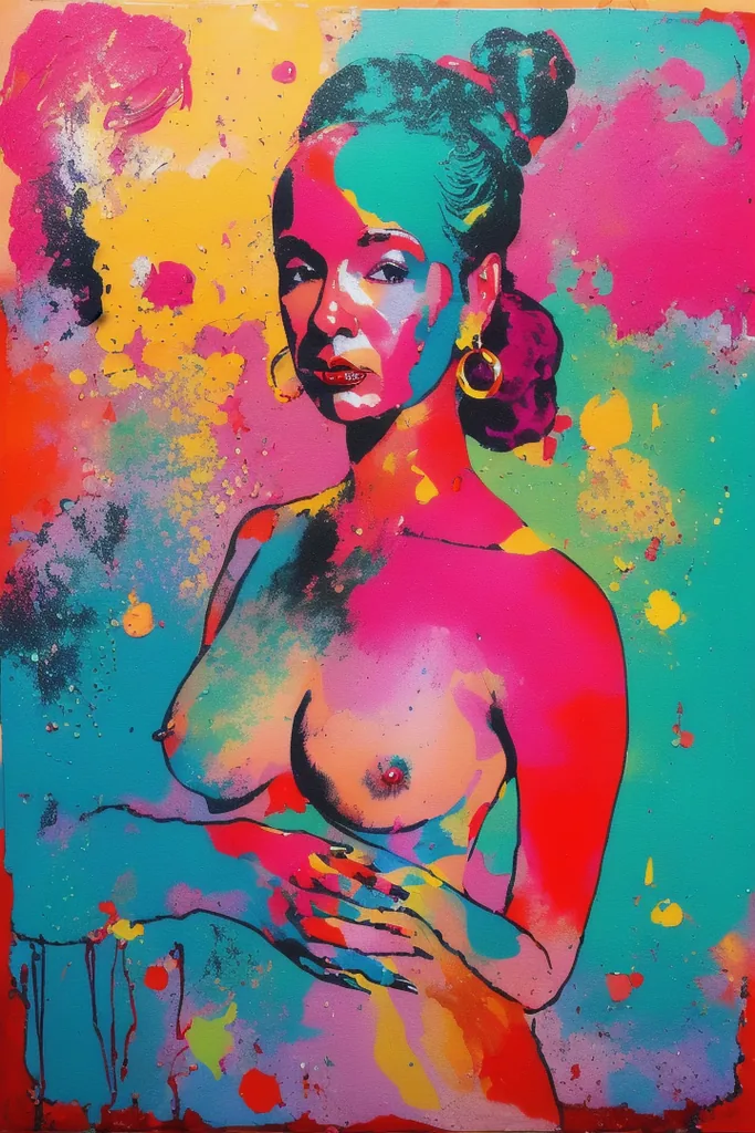 “(noma), (artwork), painting of a woman, sexy, lipstick, particles”