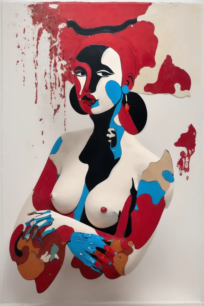 “(noma),(sculpture),a woman,sexy,lipstick,colorful,ceramic sculpture on white background,expressive,nsfw,”