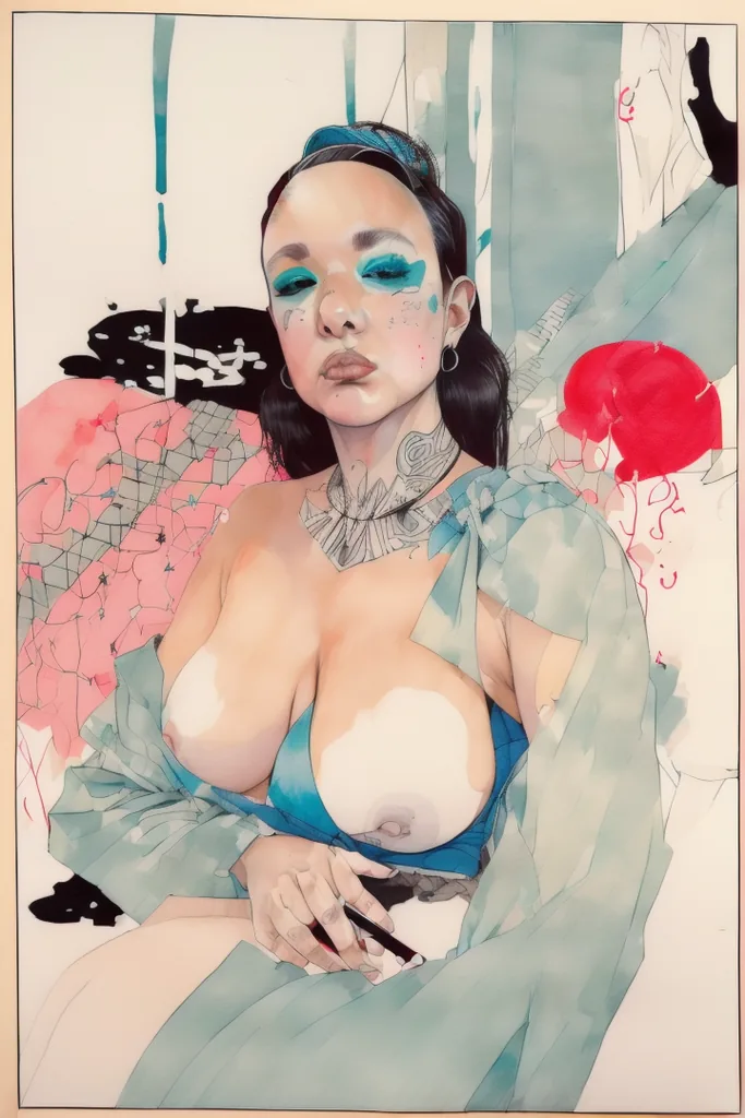 “(noma:1.8),(artwork) hand drawn pencil sketch,(lineart),outline,(expressive),sexy (nsfw),argentina,gouache,,,”