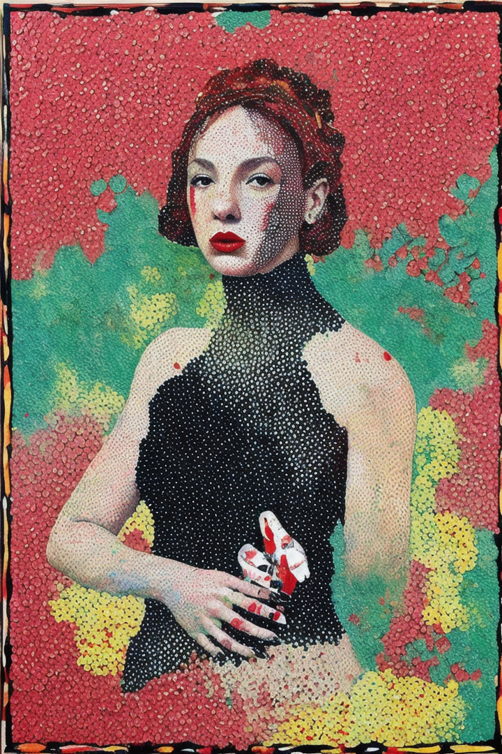“(noma), (artwork), a woman, lipstick, pointillism, expressive, cmb, radiation, quantum foam”