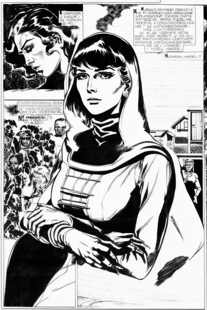 “a woman, eternauta, comic, silluete, black and white, left-to-right-manga, monochrome”