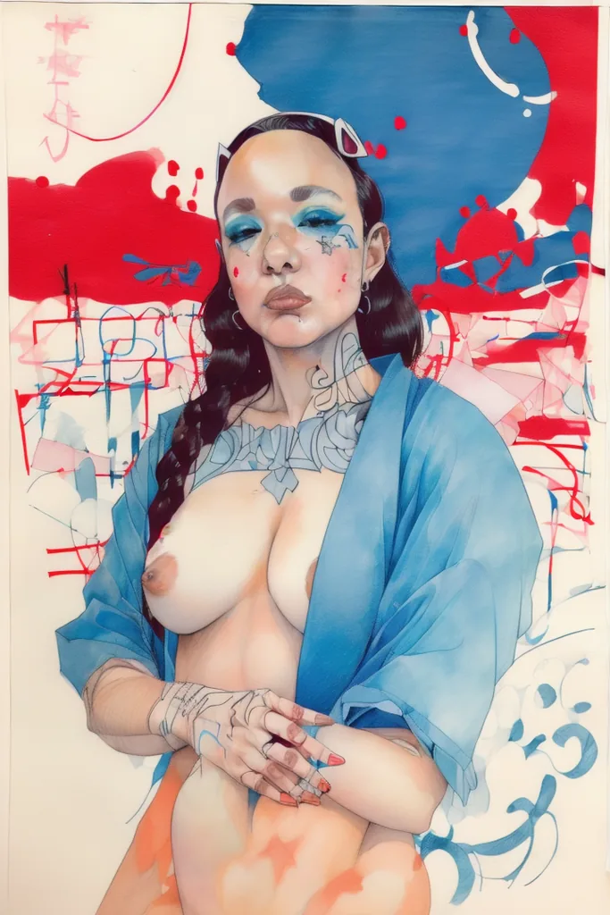 “(noma:1.8),(artwork) hand drawn pencil sketch,(lineart),outline,(expressive),sexy (nsfw),argentina,gouache,red blue,,”