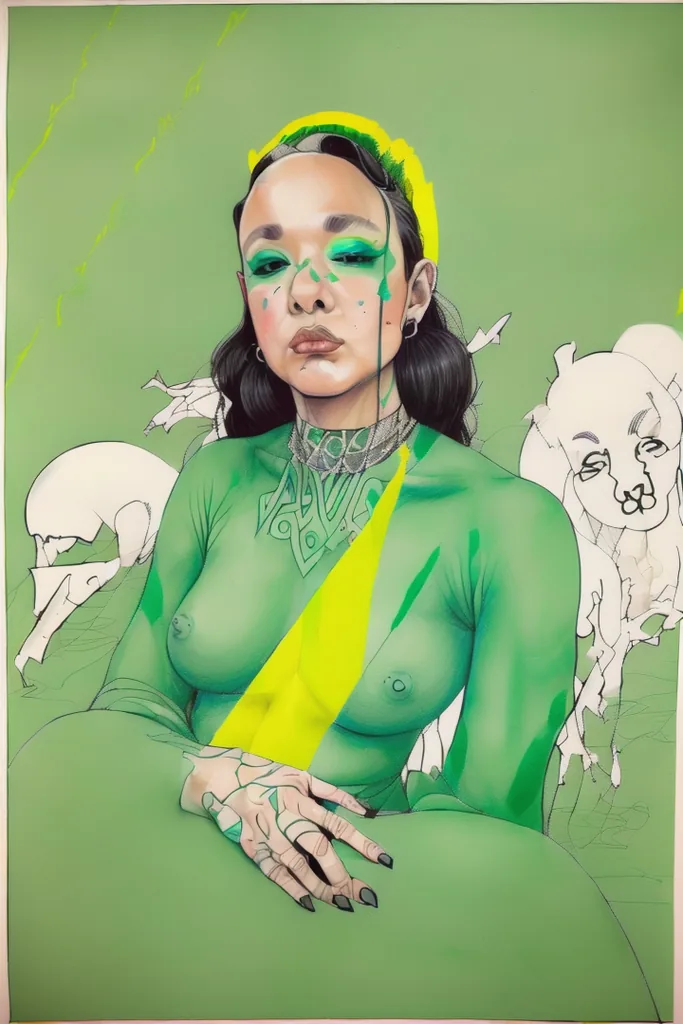 “(noma:1.8),(artwork) hand drawn pencil sketch,(lineart),outline,(expressive),sexy (nsfw),argentina,gouache,green yellow,,”
