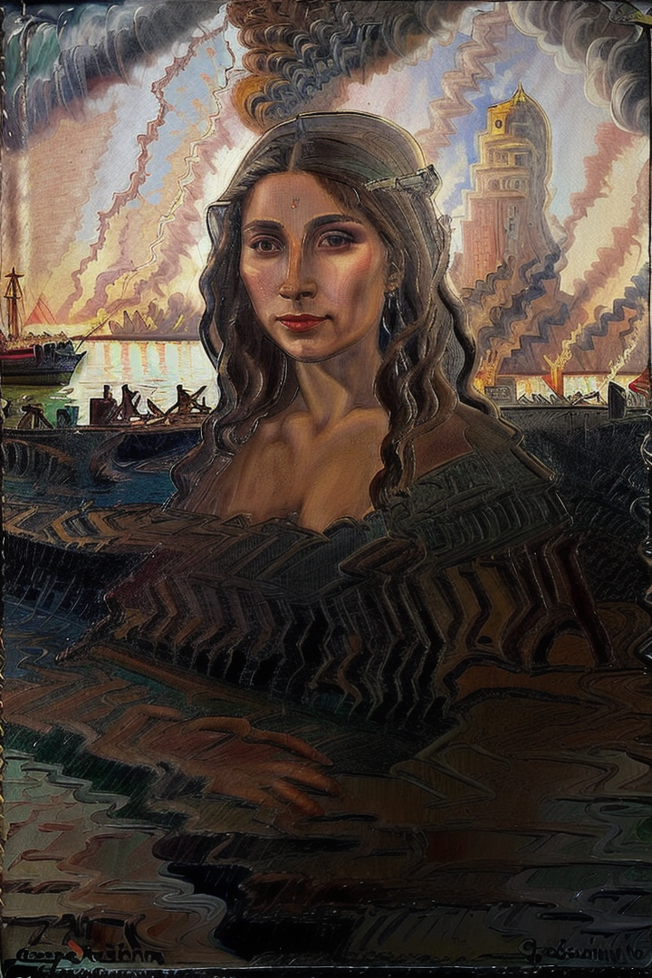 “la gioconda, quinquela, colorfull, portrait, water, reflections, buenos aires, harbour, stars, lightning, sun, moon, fire, night, day”