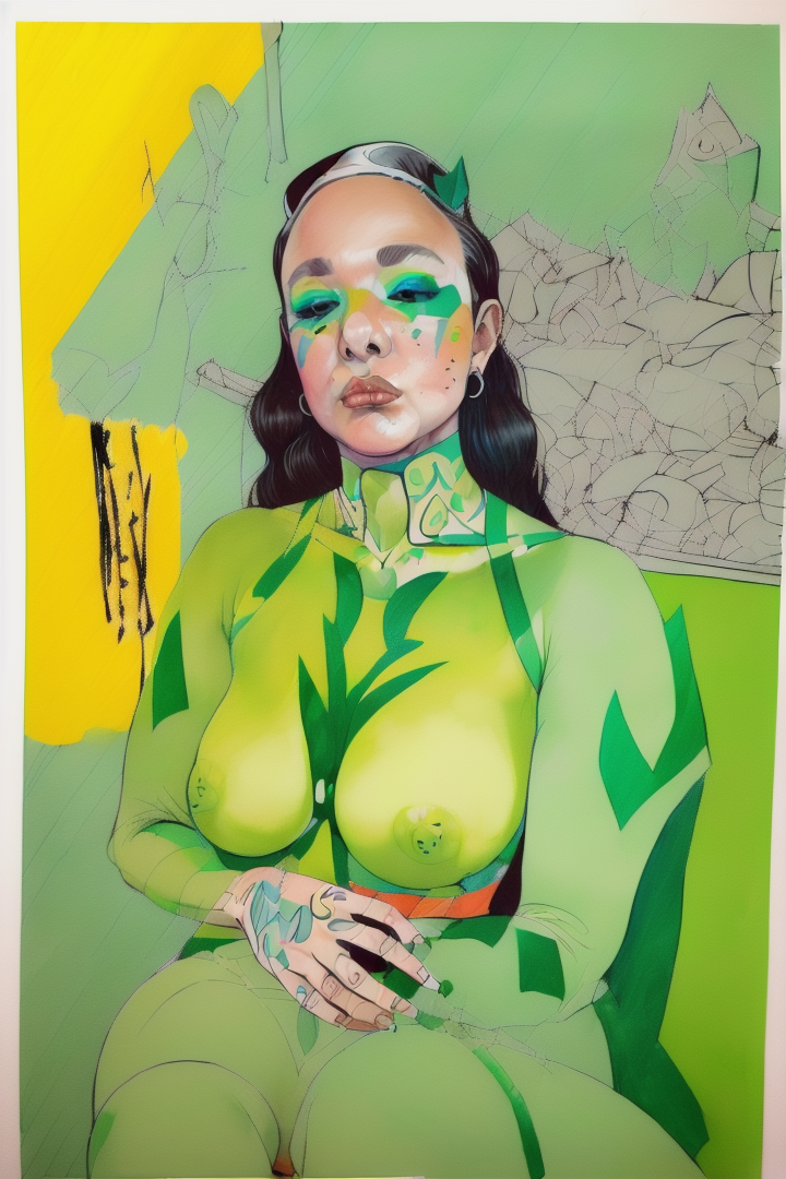 “(noma:1.8),(artwork) hand drawn pencil sketch,(lineart),outline,(expressive),sexy (nsfw),argentina,gouache,green yellow,,”