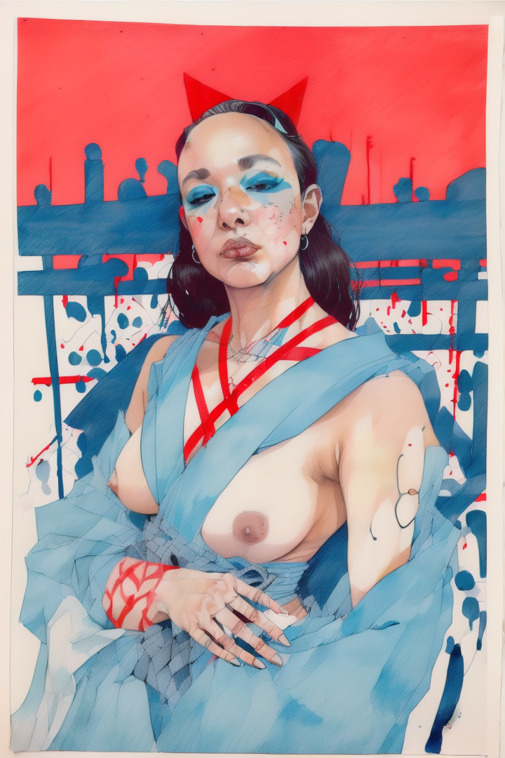 “(noma:1.8),(artwork) hand drawn pencil sketch,(lineart),outline,(expressive),sexy (nsfw),argentina,gouache,red blue,,”