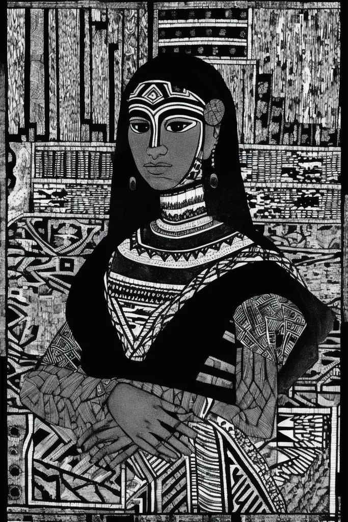 “diseño, indigena, argentino, cienaga monochrome, comic, greyscale, no humans, black background, black border”