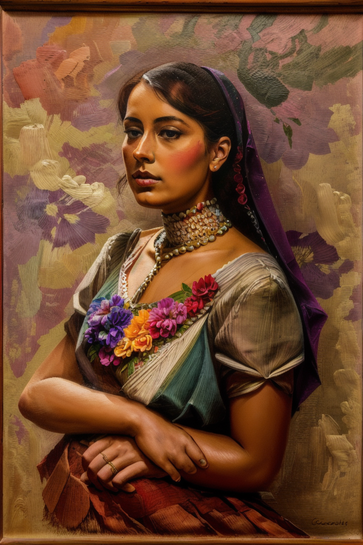 “colorful painting of a woman, oil on canvas, flowers, cloth, de la carcova”