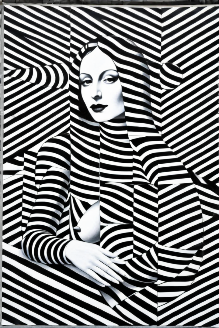 “la gioconda, (stripes) made of stripes Le Parc with a black and white design abstraccion geometrica”