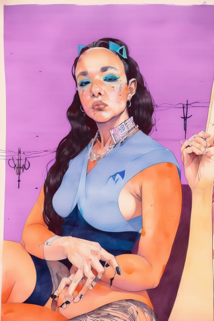 “(noma:1.8),(artwork) hand drawn pencil sketch,(lineart),outline,(expressive),sexy (nsfw),argentina,gouache,orange purple,,”