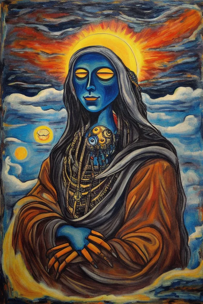 “xul solar, painting, no humans, traditional media, creature, surreal, abstract, sun, zodiac, parody, clouds, sky”
