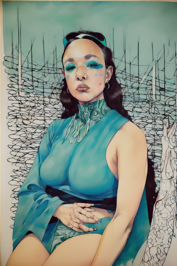 “(noma:1.8),(artwork) hand drawn pencil sketch,(lineart),outline,(expressive),sexy (nsfw),argentina,gouache,black blue green,,”