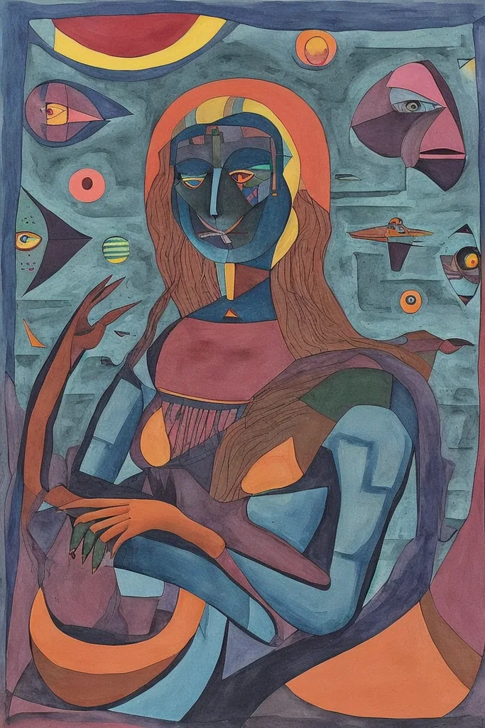 “xul solar,no humans,woman,surreal,abstract,geometric,gouache,”