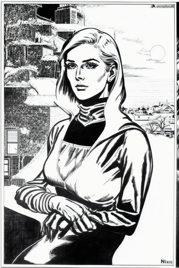 “a woman, eternauta, comic, silluete, black and white, left-to-right-manga, monochrome”