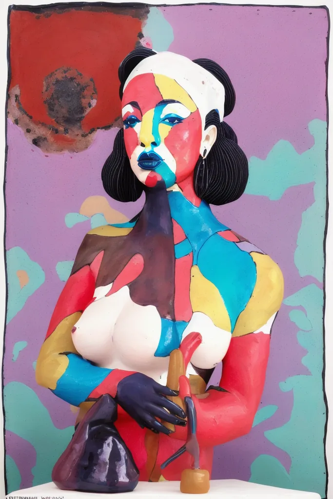 “(noma),(sculpture),a woman,sexy,lipstick,colorful,(photograph of a ceramic sculpture) on white,expressive,nsfw,”