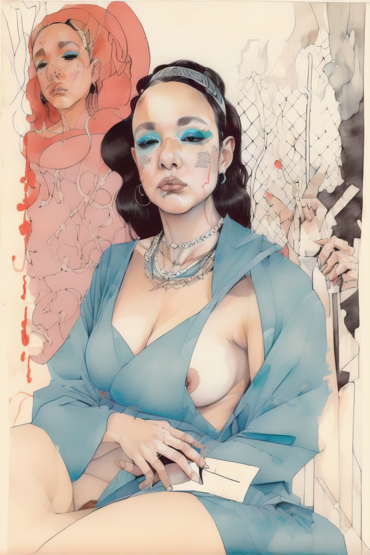 “(noma:1.8),(artwork) hand drawn pencil sketch,(lineart),outline,(expressive),sexy (nsfw),argentina,gouache,,,”