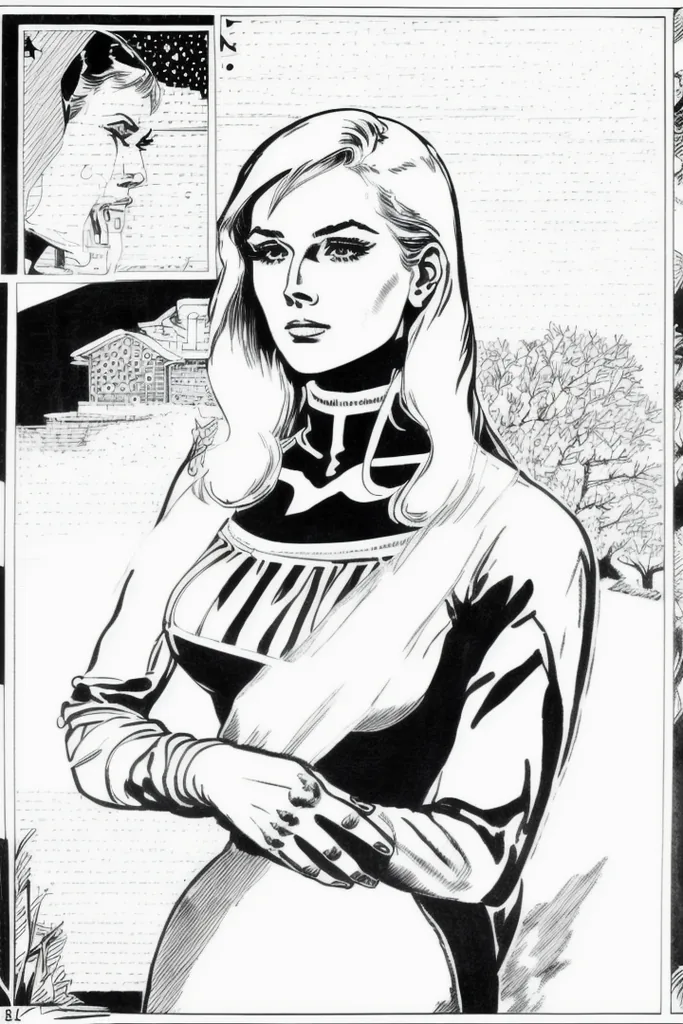 “a woman, eternauta, comic, silluete, black and white, left-to-right-manga, monochrome”