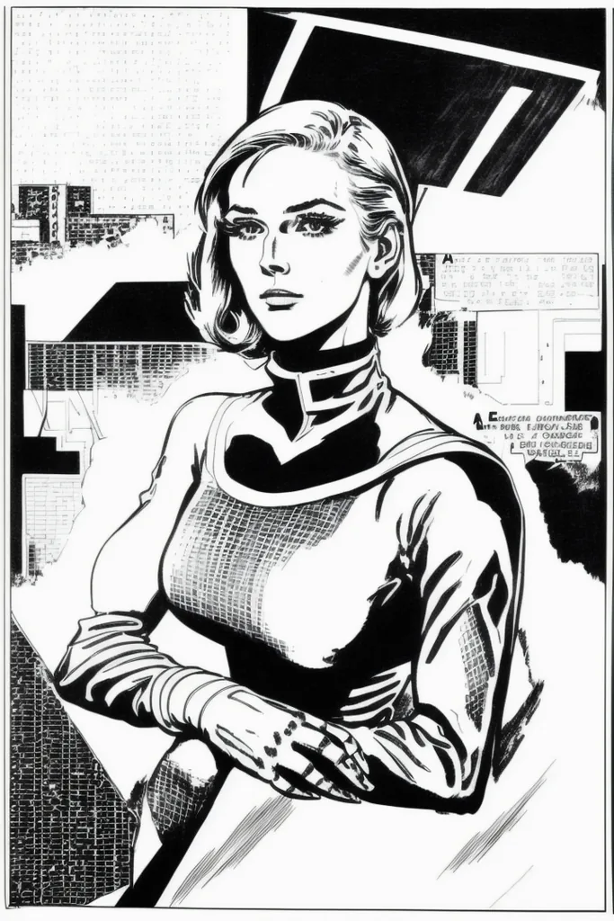 “a woman, eternauta, comic, silluete, black and white, left-to-right-manga, monochrome”