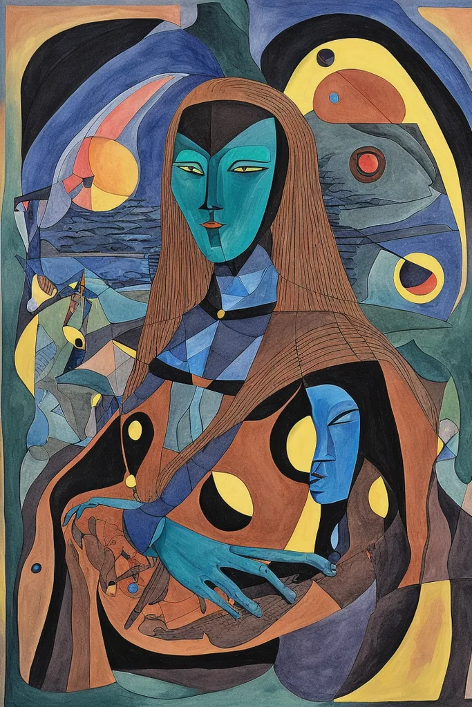 “xul solar,no humans,woman,surreal,abstract,geometric,gouache,”