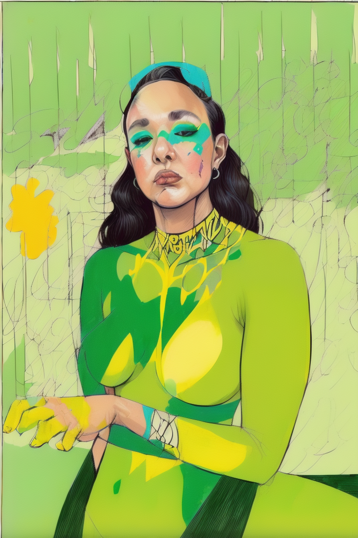“(noma:1.8),(artwork) hand drawn pencil sketch,(lineart),outline,(expressive),sexy (nsfw),argentina,gouache,green yellow,,”