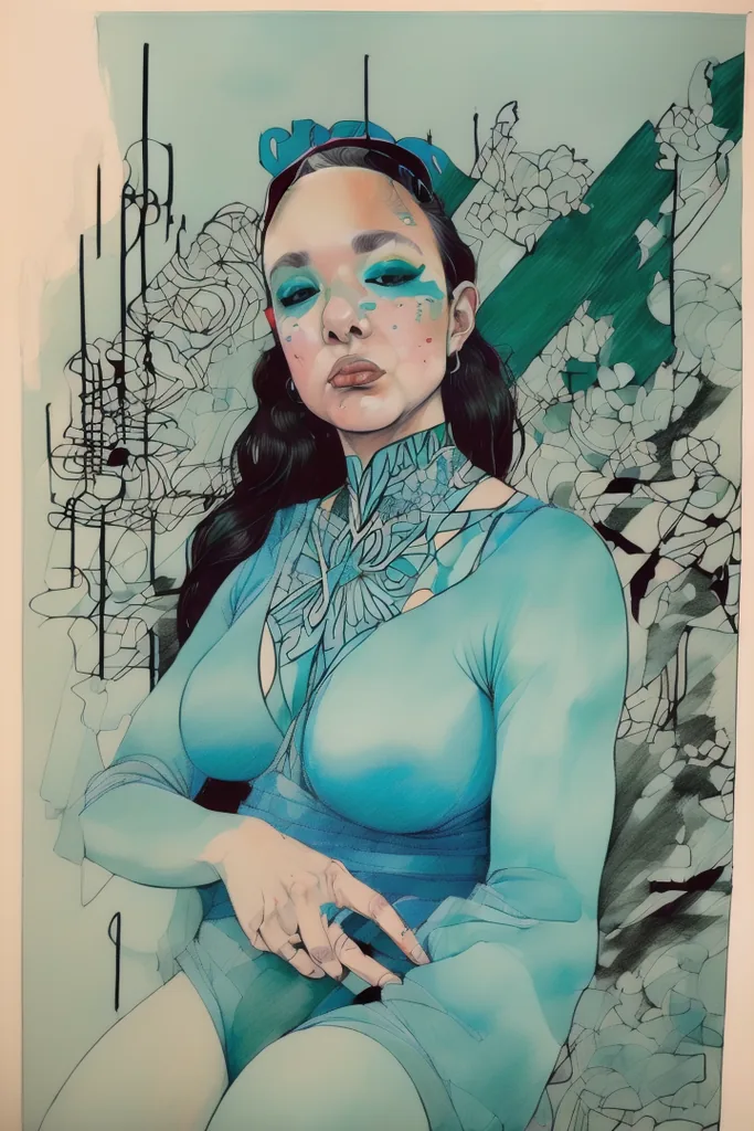 “(noma:1.8),(artwork) hand drawn pencil sketch,(lineart),outline,(expressive),sexy (nsfw),argentina,gouache,black blue green,,”