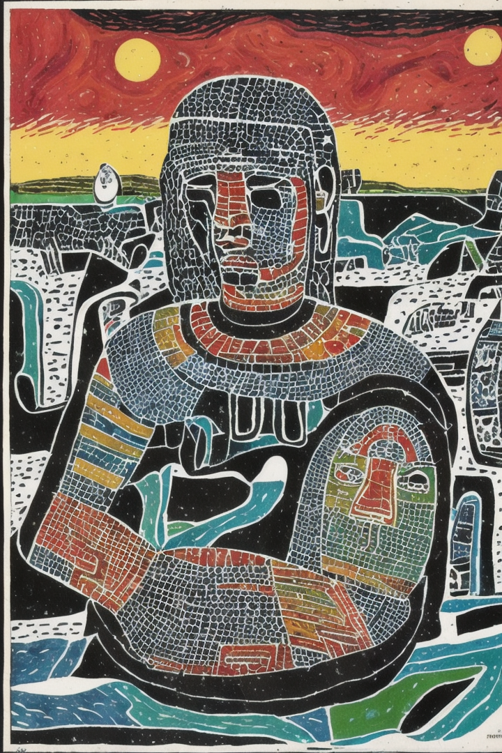 “painting of a human, (noma),(quinquela), xul solar, diseño indigena argentino, fini, forner, de la carcova, berni, le parc, eternauta”
