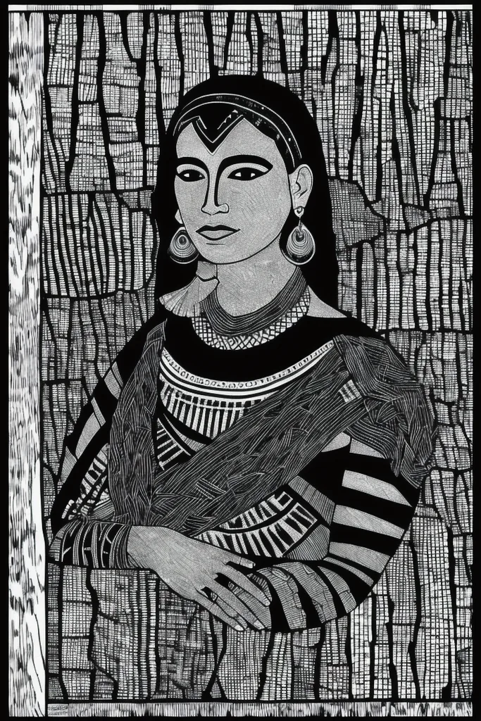 “diseño, indigena, argentino, cienaga monochrome, comic, greyscale, no humans, black background, black border”