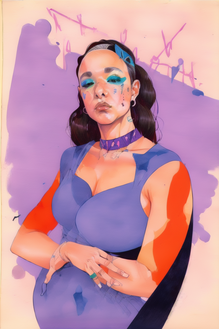 “(noma:1.8),(artwork) hand drawn pencil sketch,(lineart),outline,(expressive),sexy (nsfw),argentina,gouache,orange purple,,”