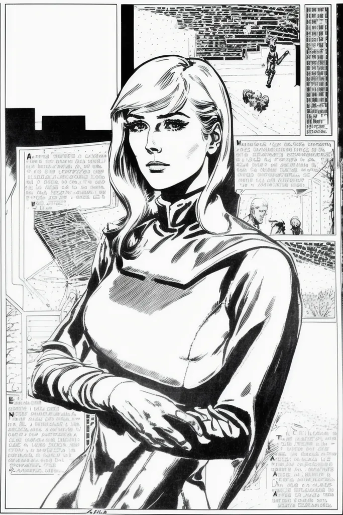 “a woman, eternauta, comic, silluete, black and white, left-to-right-manga, monochrome”