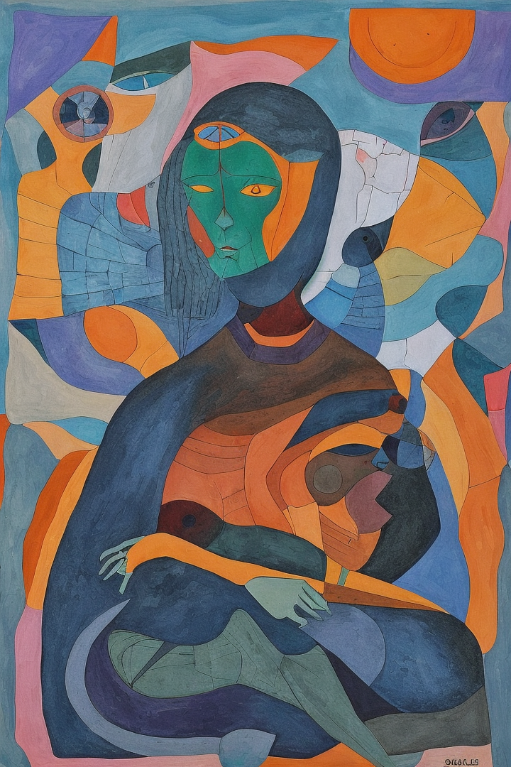 “xul solar,no humans,woman,surreal,abstract,geometric,gouache,”