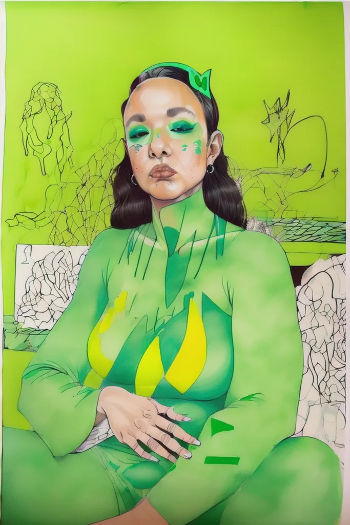 “(noma:1.8),(artwork) hand drawn pencil sketch,(lineart),outline,(expressive),sexy (nsfw),argentina,gouache,green yellow,,”