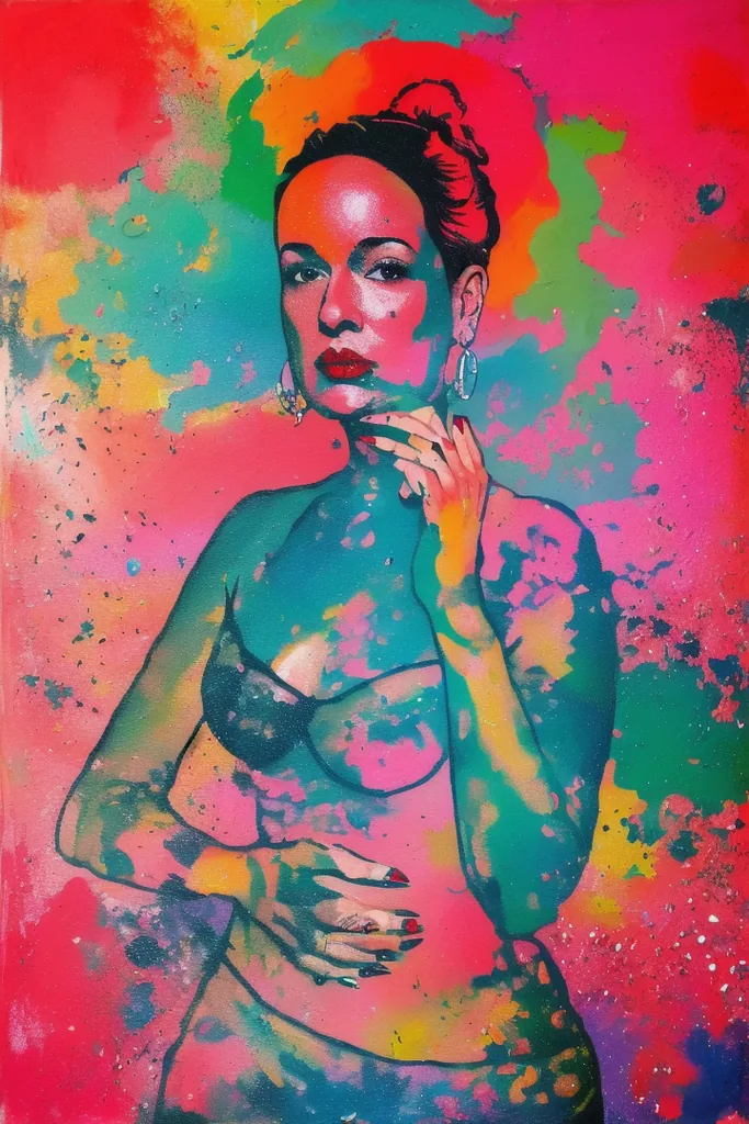 “(noma), (artwork), painting of a woman, sexy, lipstick, particles”