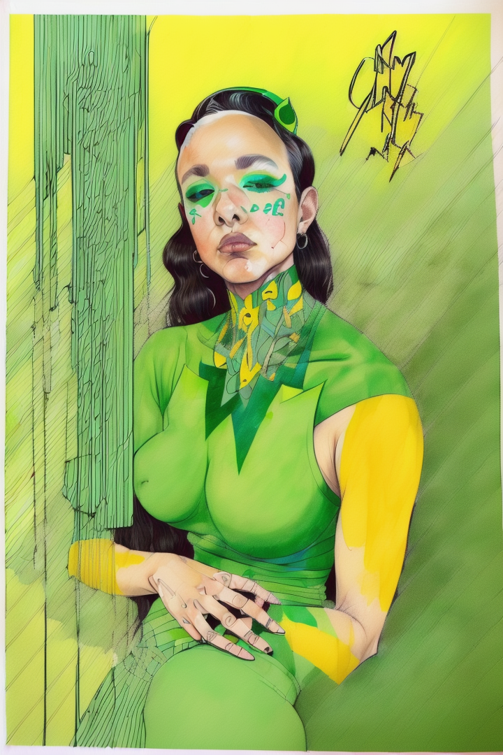 “(noma:1.8),(artwork) hand drawn pencil sketch,(lineart),outline,(expressive),sexy (nsfw),argentina,gouache,green yellow,,”