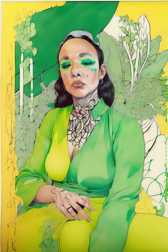 “(noma:1.8),(artwork) hand drawn pencil sketch,(lineart),outline,(expressive),sexy (nsfw),argentina,gouache,green yellow,,”