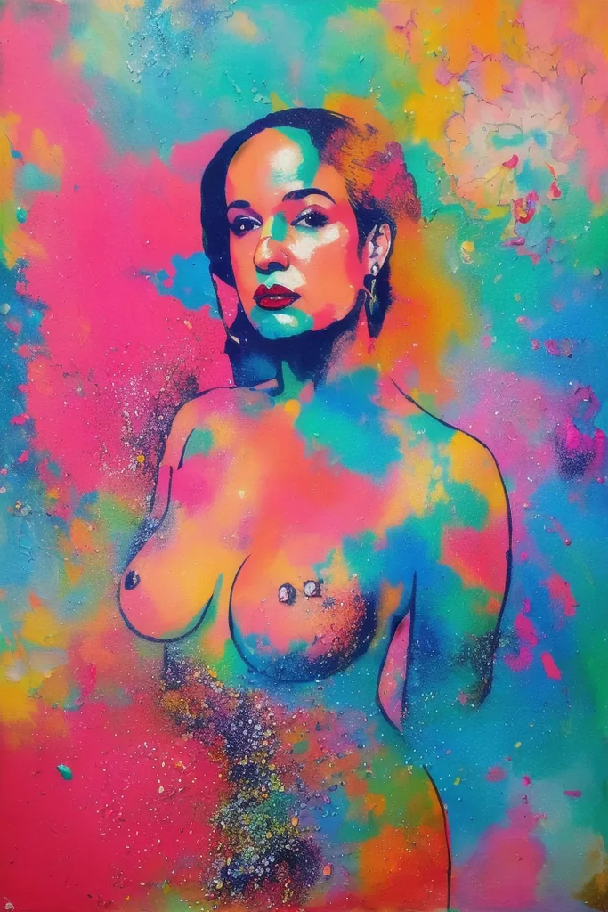 “(noma), (artwork), painting of a woman, sexy, lipstick, particles”