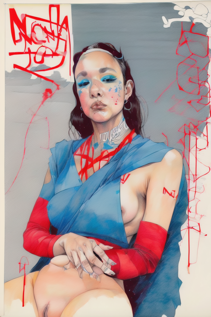 “(noma:1.8),(artwork) hand drawn pencil sketch,(lineart),outline,(expressive),sexy (nsfw),argentina,gouache,red blue,,”