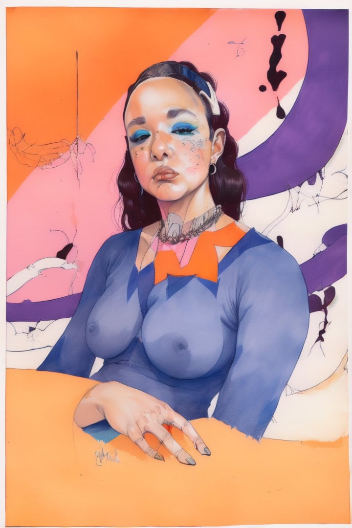 “(noma:1.8),(artwork) hand drawn pencil sketch,(lineart),outline,(expressive),sexy (nsfw),argentina,gouache,orange purple,,”