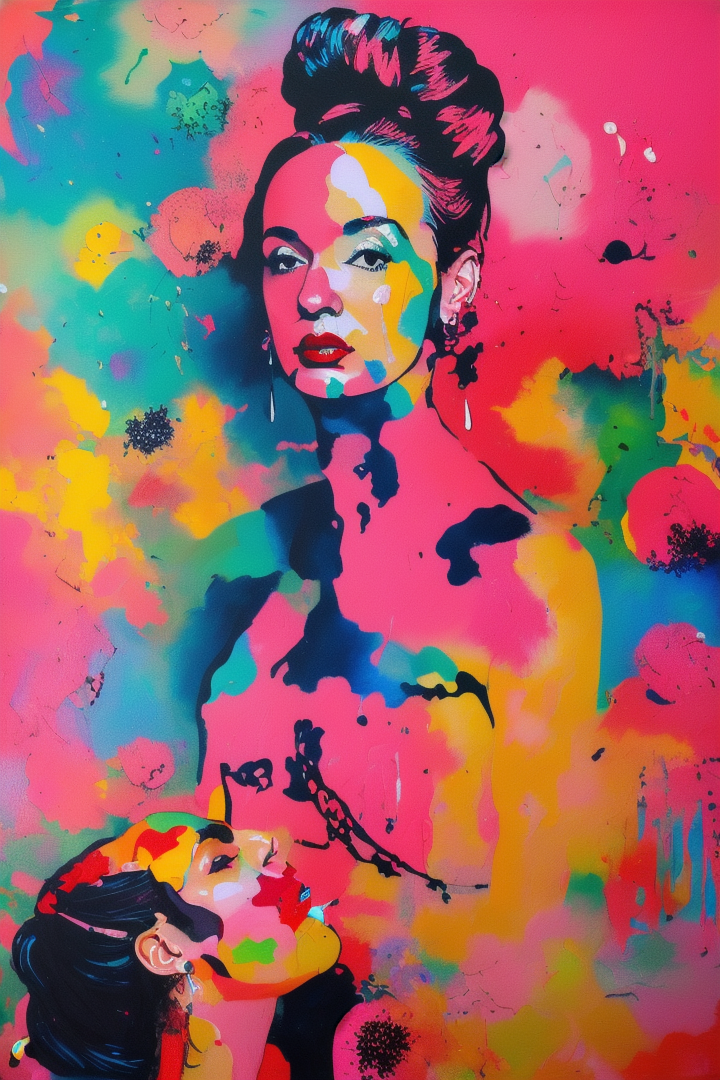 “(noma), (artwork), painting of a woman, sexy, lipstick, particles”