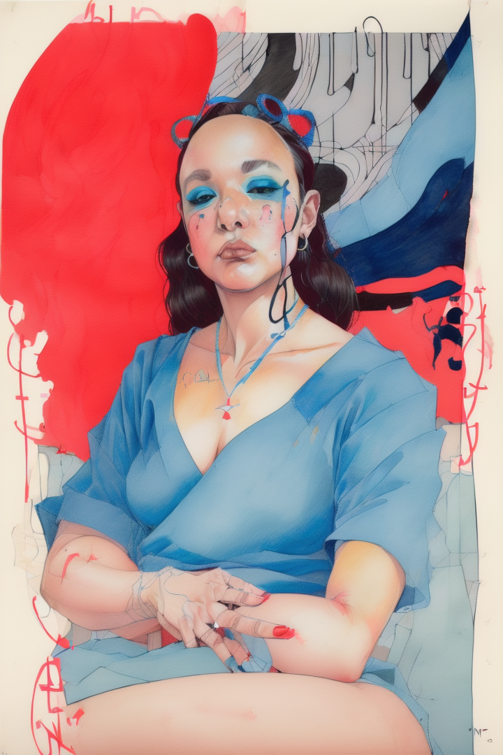 “(noma:1.8),(artwork) hand drawn pencil sketch,(lineart),outline,(expressive),sexy (nsfw),argentina,gouache,red blue,,”