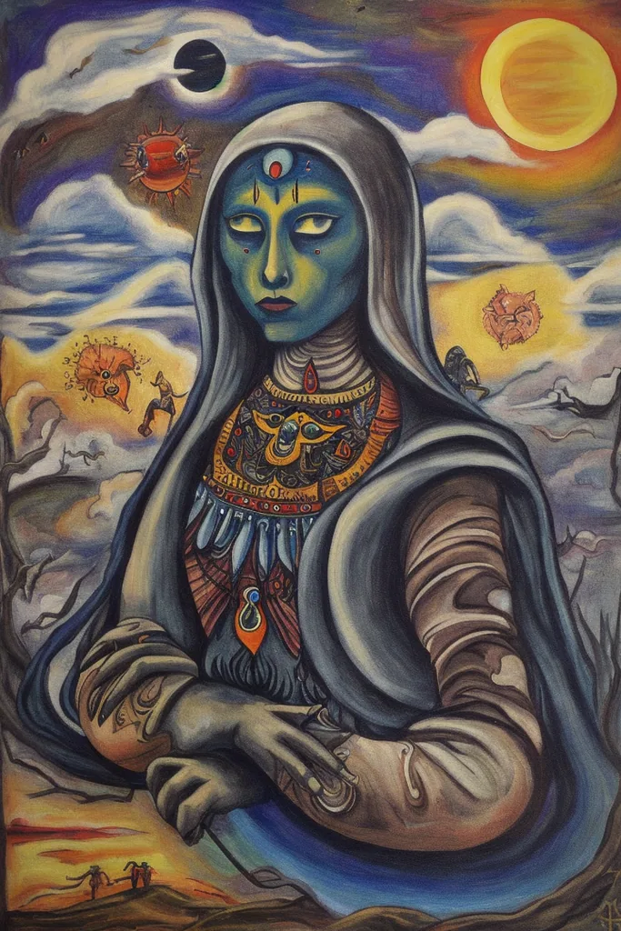 “xul solar, painting, no humans, traditional media, creature, surreal, abstract, sun, zodiac, parody, clouds, sky”