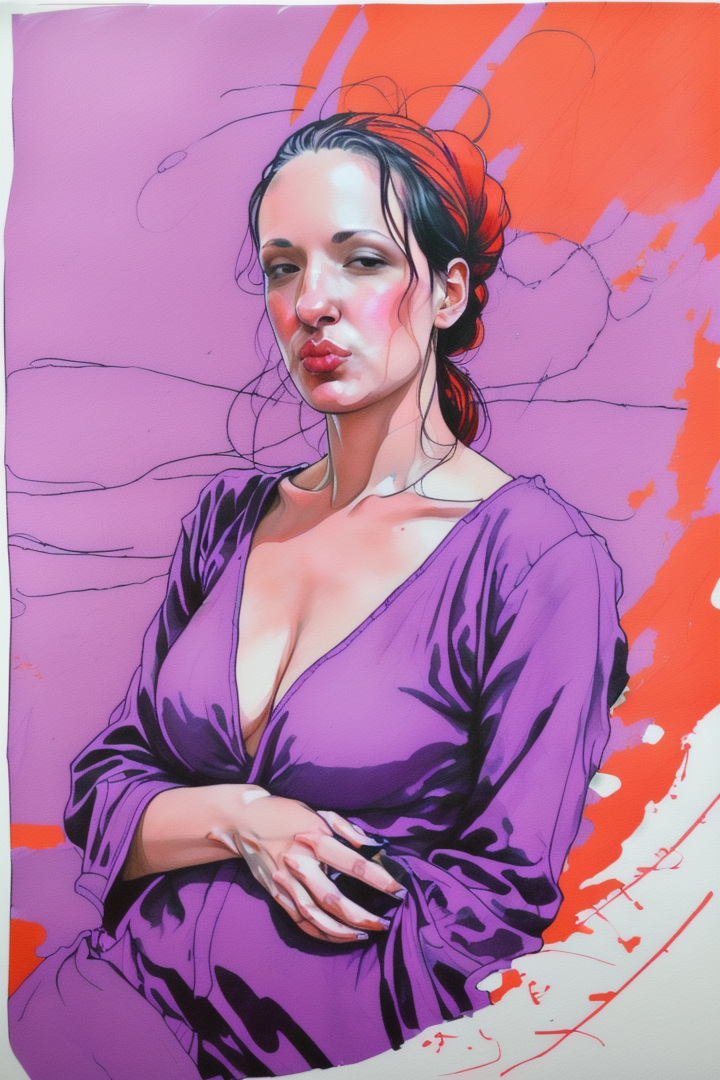 “(noma),(artwork) sketch of a woman,lineart,outline,(expressive),freehand,nsfw,argentina,color,purple,orange,pink,,”