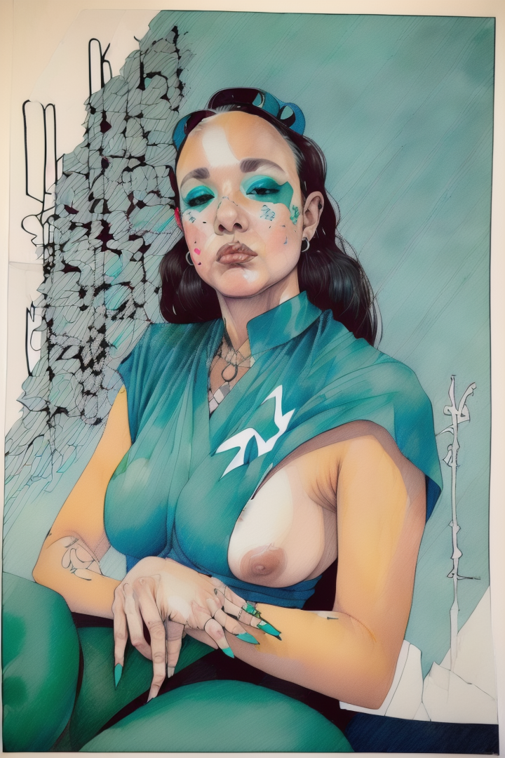“(noma:1.8),(artwork) hand drawn pencil sketch,(lineart),outline,(expressive),sexy (nsfw),argentina,gouache,black blue green,,”